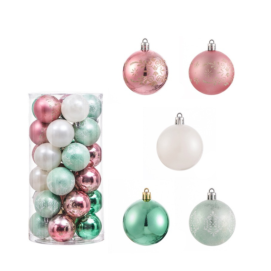 (30er Set) Ø6cm Christbaum Schmuck Glitzer Weihnachtskugeln Tannenbaum Aufhänger Home Deko - Grün / Weiss / Rosa