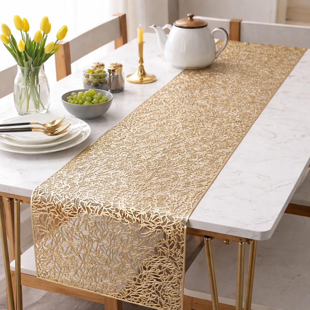 Das robuste Kunststoff Material ist besonders praktisch und pflegeleicht, wodurch sich der Läufer ideal für den regelmässigen Einsatz eignet. Gleichzeitig bleibt er formstabil und lässt sich unkompliziert auf deinem Tisch platzieren. Die grosszügige Länge bietet dir viele Möglichkeiten, deinen Tisch kreativ zu dekorieren und individuell zu gestalten.