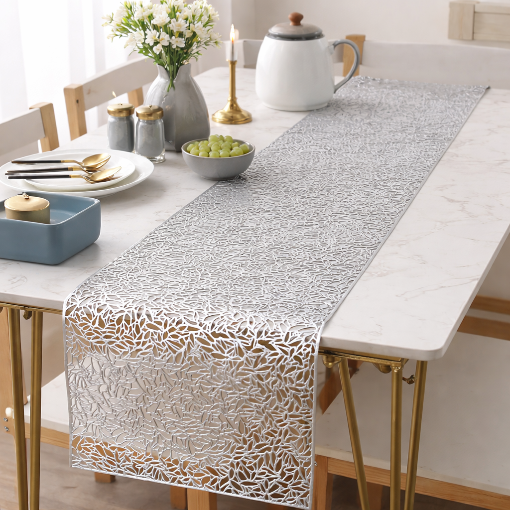 (30x150cm) Kunststoff Tischläufer Geometrische Party Tisch Deko - Silber