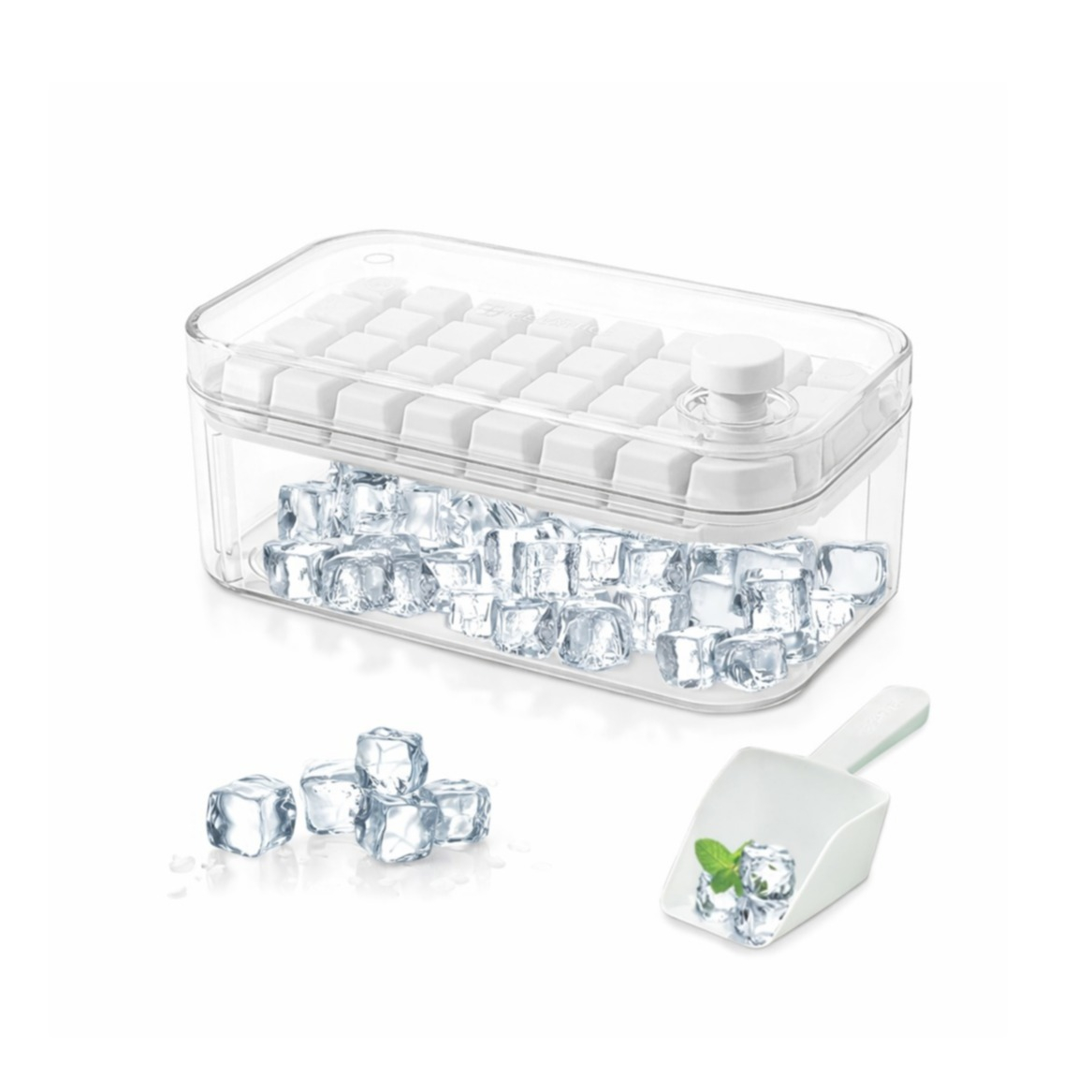 (32-fach) Kunststoff Eiswürfel Form Behälter mit Deckel Einfach Lösende Ice Cube Schale + Eis Schaufel - Transparent