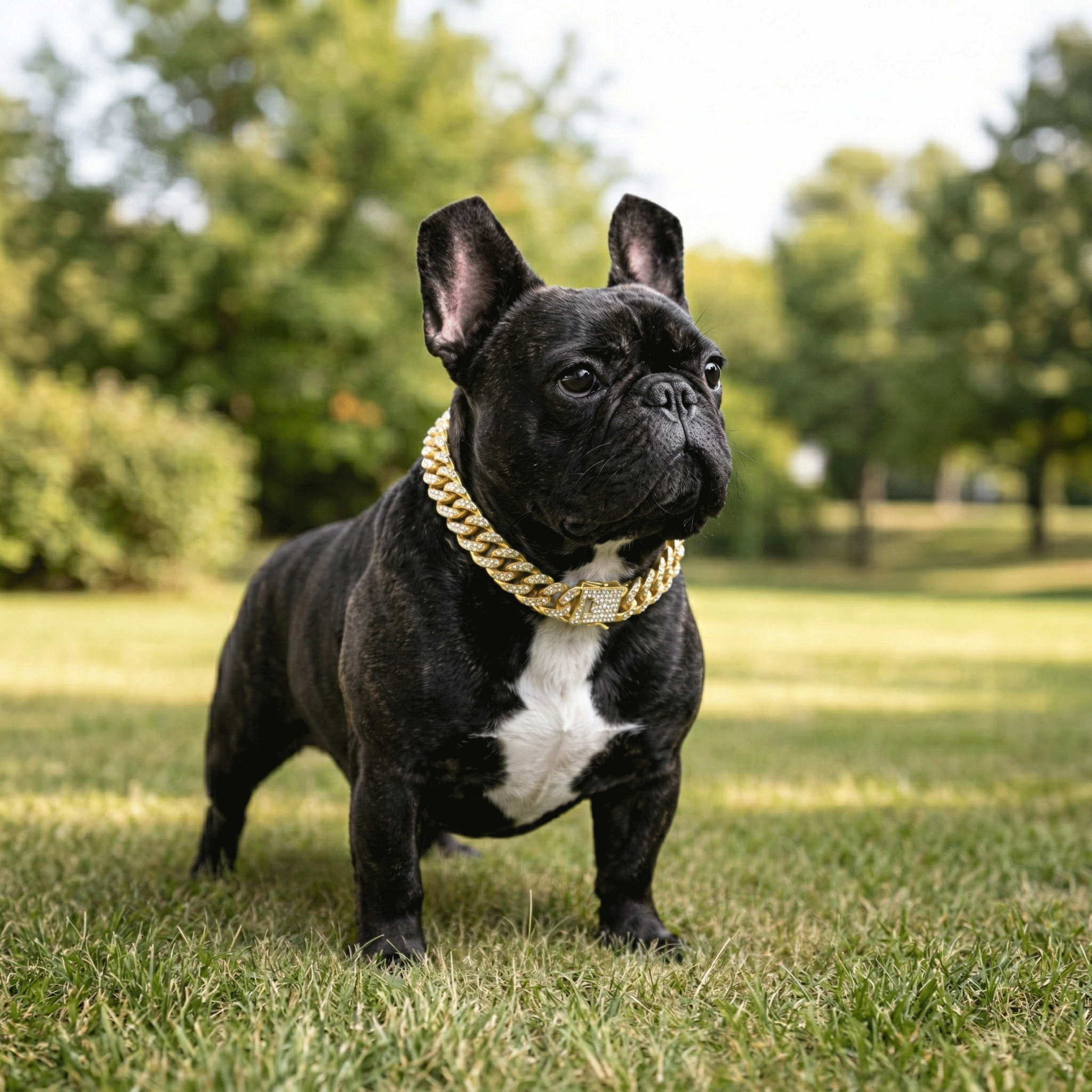 Dieses elegante Hunde Halsband aus Metall ist ideal für ein Fotoshooting oder Spaziergang geeignet. Das Haustier Glitzer Accessoire lässt sich schnell und einfach um den Hals deines Lieblings schnallen. Die Schnalle lässt sich bequem einrasten und wird durch die zusätzlichen Bügel an der Seite gesichert. Das Halsband ist ein echter Hingucker und ein Must-have für alle Haustier Besitzer!