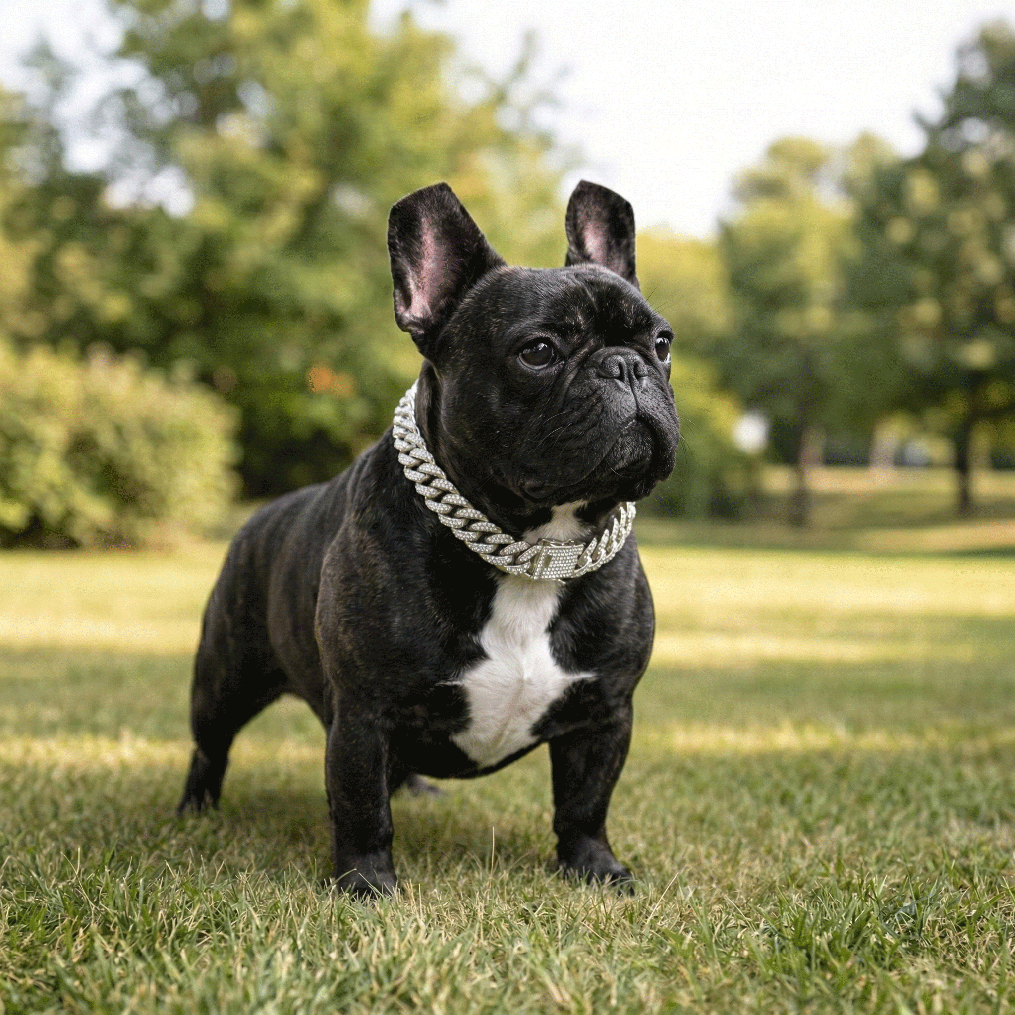 Dieses elegante Hunde Halsband aus Metall ist ideal für ein Fotoshooting oder Spaziergang geeignet. Das Haustier Glitzer Accessoire lässt sich schnell und einfach um den Hals deines Lieblings schnallen. Die Schnalle lässt sich bequem einrasten und wird durch die zusätzlichen Bügel an der Seite gesichert. Das Halsband ist ein echter Hingucker und ein Must-have für alle Haustier Besitzer!