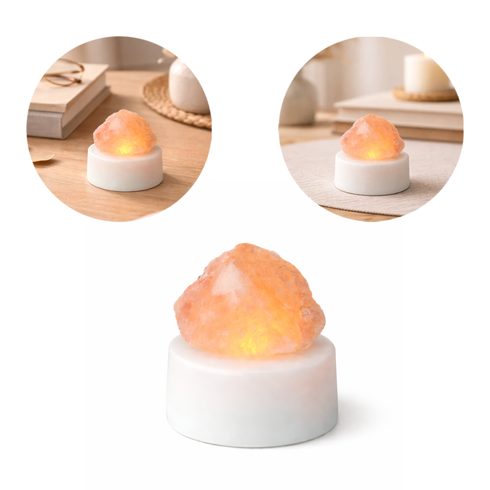 Tauche dein Zuhause in ein sanftes, warmweisses Licht – ganz ohne offenes Feuer. Dieses flackernde LED Teelicht im 4er Set sorgt mit dem authentischen Salzstein für eine beruhigende Atmosphäre in jedem Raum. Ob im Wohnzimmer, Schlafzimmer oder im Badezimmer: Das sanfte Lichtspiel schafft sofort eine wohlige Stimmung.