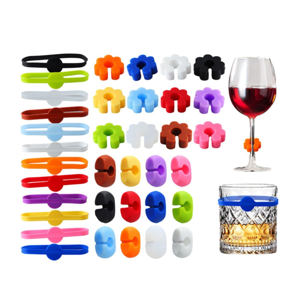 (36-tlg. Set) Silikon Glas Markierer Wiederverwendbare Trinkglas Markierungs Band / Clip - Bunt