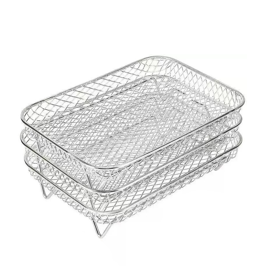 (3er Set) 19x13.5cm Airfryer Edelstahl Gitter Heissluft Fritteuse Grill Gestell - Rechteckig