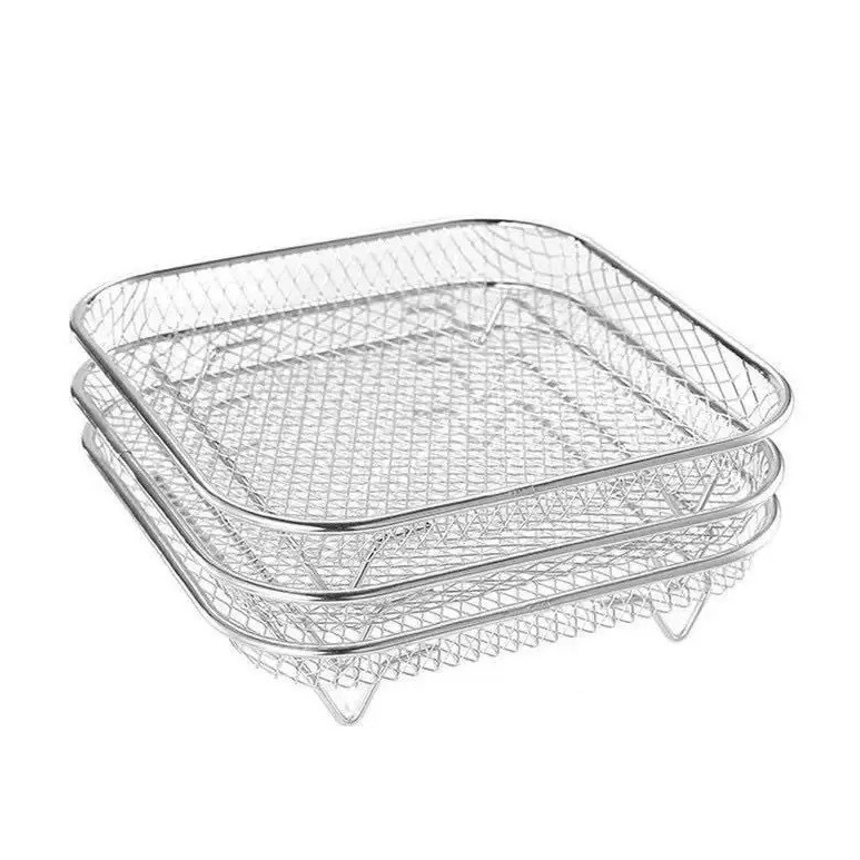(3er Set) 20.5cm Airfryer Edelstahl Gitter Heissluft Fritteuse Grill Gestell - Quadratisch