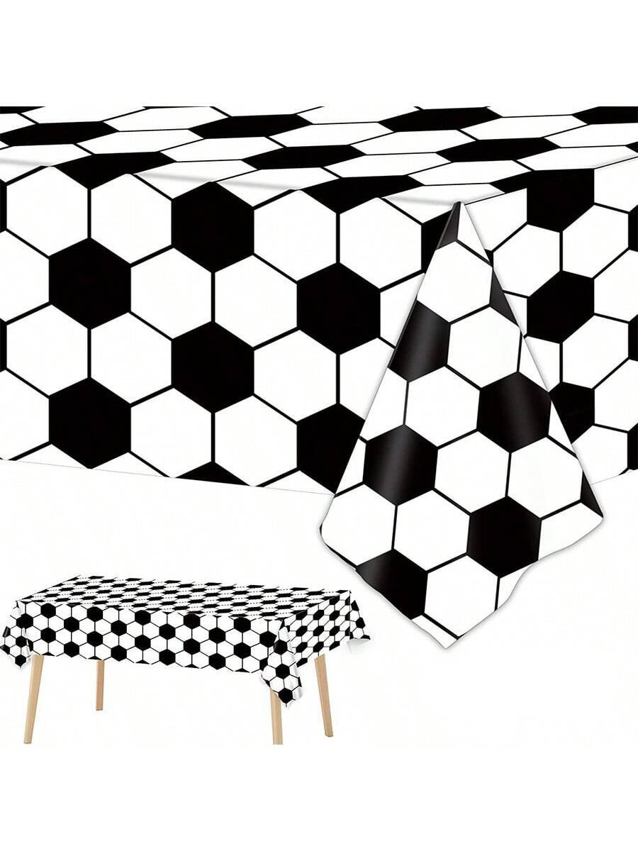 (3er Set) 271x138cm Deko Folien Tischdecke Party Dekoration WM / EM Tischtuch Fussball Design - Weiss / Schwarz