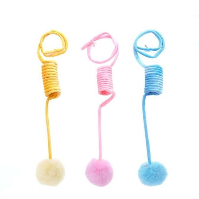 (3er Set) Interaktiver Katzen Federball Haustier Spielzeug Hängender Plüsch Ball mit Glocke / Saugnapf - Bunt