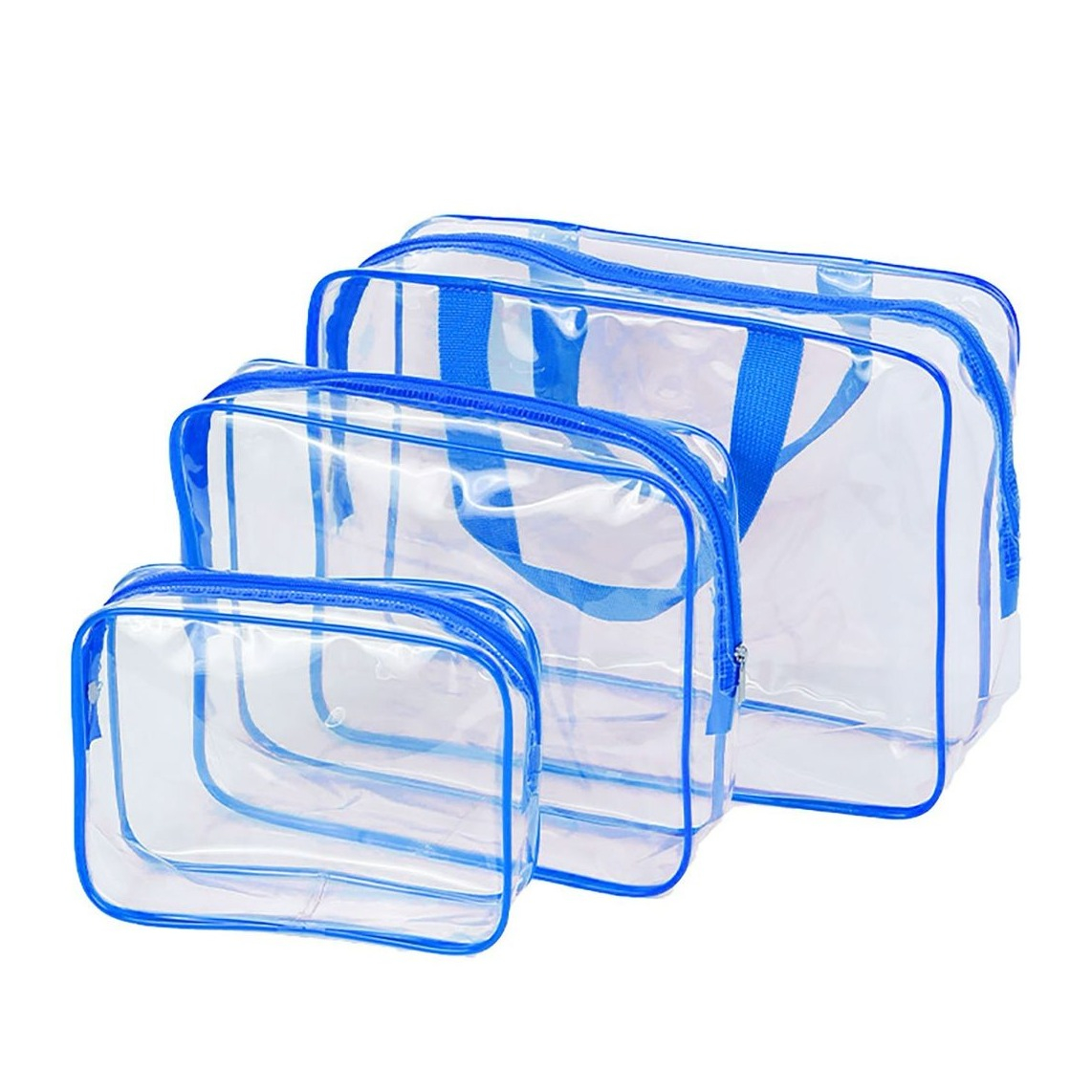 (3er Set) Kosmetik Make Up Tasche Handgepäck Necessaire Organizer Bag mit Reissverschluss - Transparent / Blau