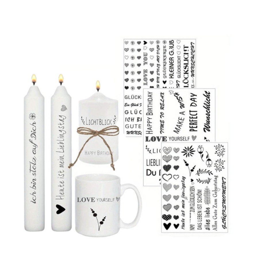 Mit diesen stilvollen Tattoo Stickern verwandelst du ganz einfach jede Kerze in ein echtes Unikat! Das 3er Set wasserfester Aufkleber ist perfekt, um Kerzen kreativ zu gestalten, ob für besondere Anlässe oder einfach als schicke Deko. Die Tattoo Folien lassen sich super leicht anbringen und haften zuverlässig, sogar auf unebenen Kerzenoberflächen. Ideal für DIY-Projekte, Geschenke oder festliche Tischdekorationen.