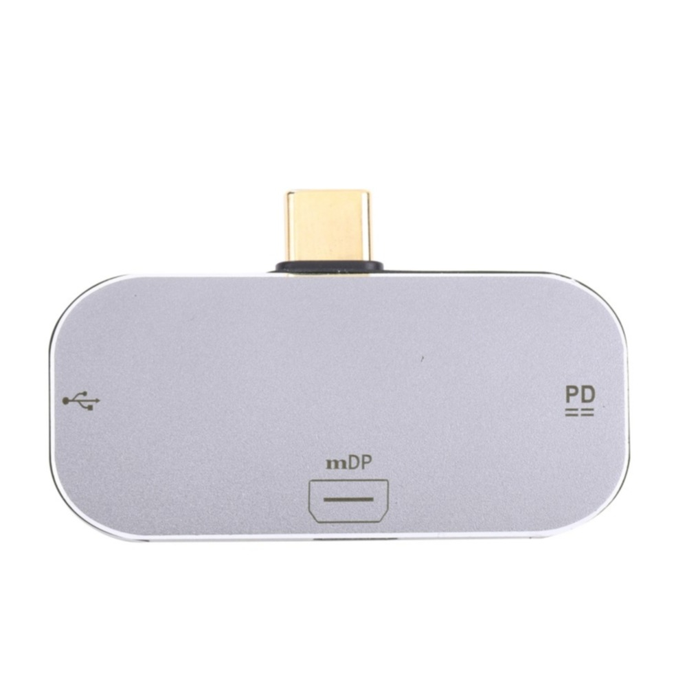3in1 USB C auf Mini DisplayPort MDP (8K@60Hz) / 2x USB C (Power Delivery) Thunderbolt Adapter Konverter - Silber