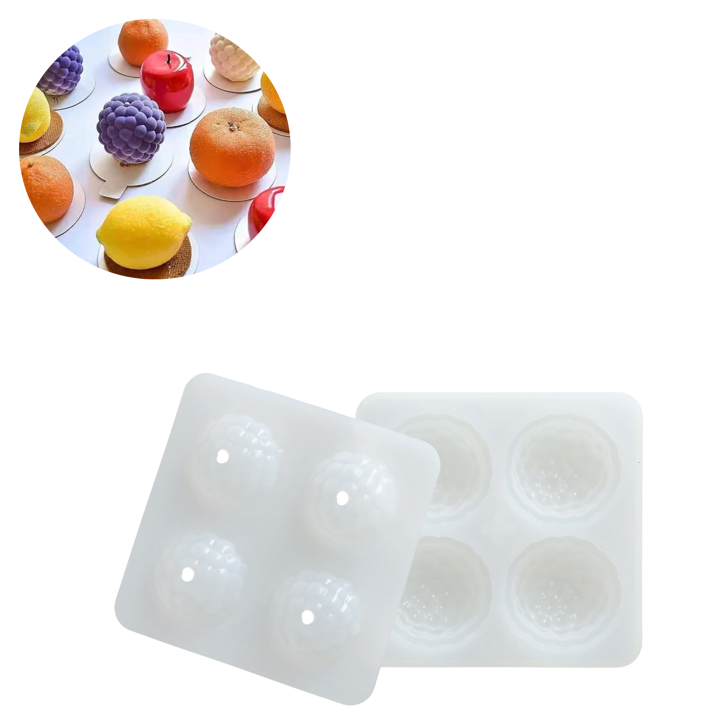 (4-fach) Silikon 3D Trend Früchte Kuchen Form DIY Gussform für Virale Frucht Desserts - Himbeere