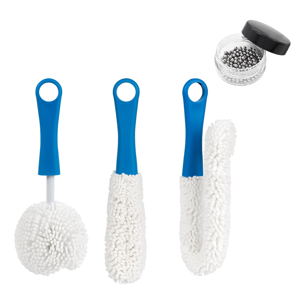 (4-tlg. Set) Kratzfreie Schaumstoff Bürsten Glas Reinigungsbürsten inkl. Edelstahl Kugeln für Dekanter / Flaschen / Karaffen / Vasen