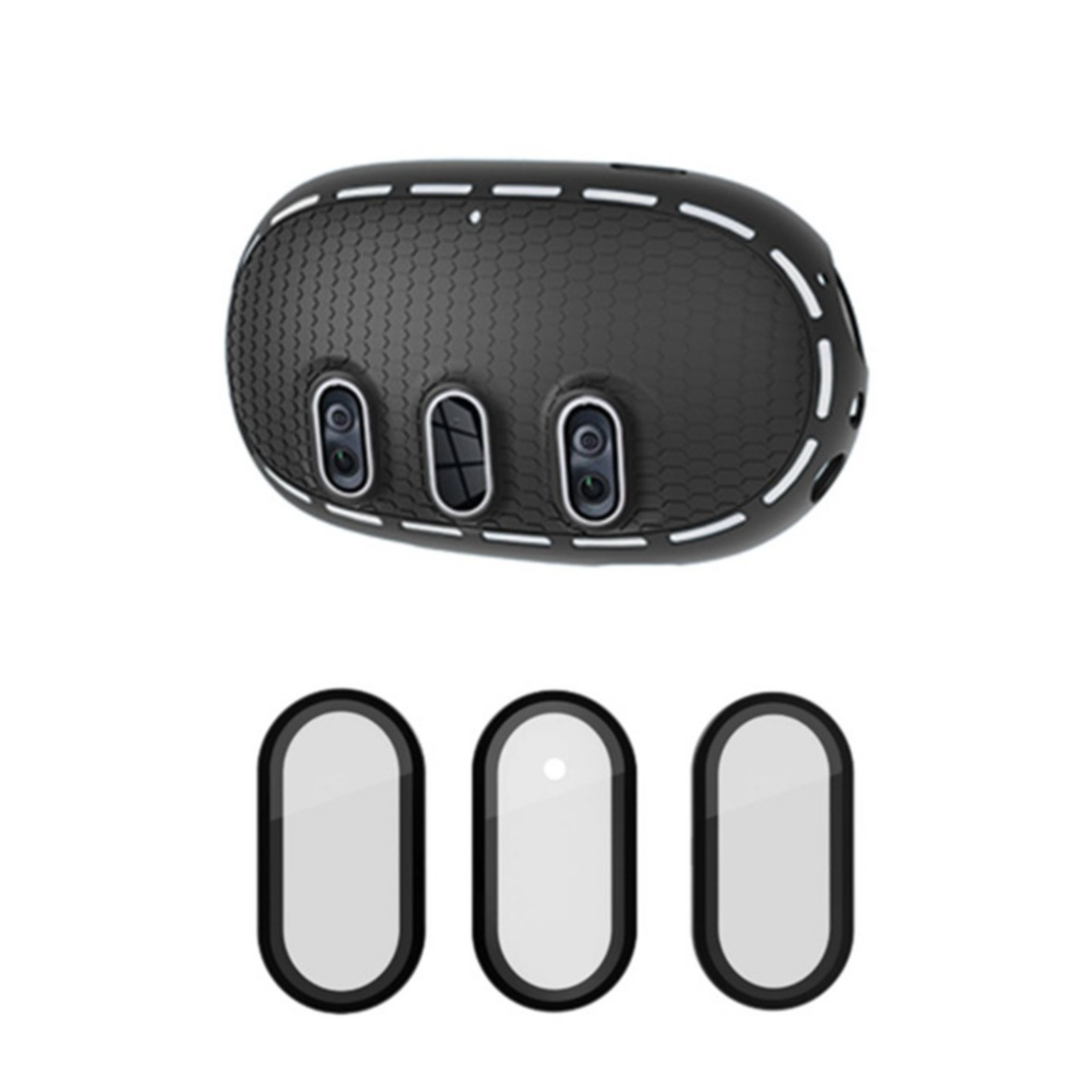 (4-tlg. Set) Meta Quest / Oculus Quest 3 Silikon Brillen-Schutz + Linsen Glas Abdeckung - Schwarz