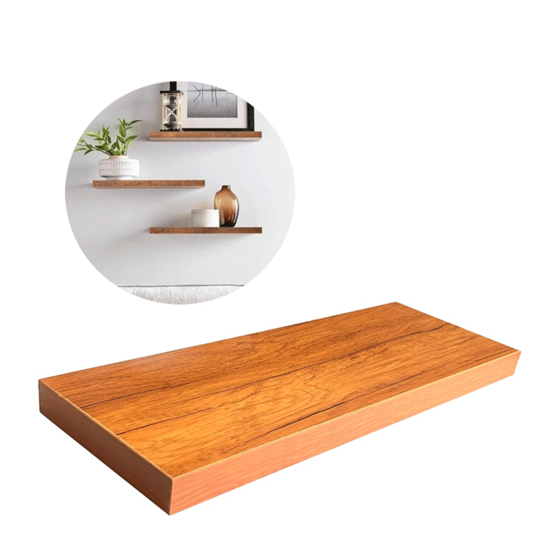 - Schweberegal mit einer Holzbrettebene