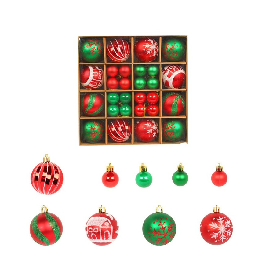 (44er Set) Christbaum Schmuck Weihnachtskugeln Deko Ornamente - Rot / Grün