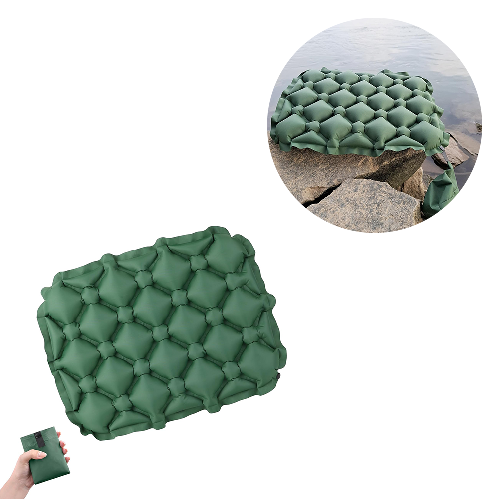 (44x34cm) Aufblasbares Outdoor Sitzkissen Wasserabweisende Matte für Camping / Wandern / Festivals mit Aufbewahrungstasche - Grün