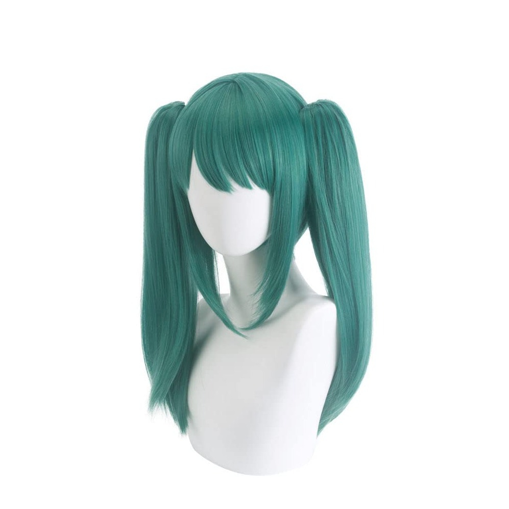(45cm) Anime Cosplay Perücke mit Zopf Klammern Vampir Miku Fasnacht Kostüm Zubehör Motto Party / Halloween Accessoire inkl. Haarnetz - Dunkelgrün
