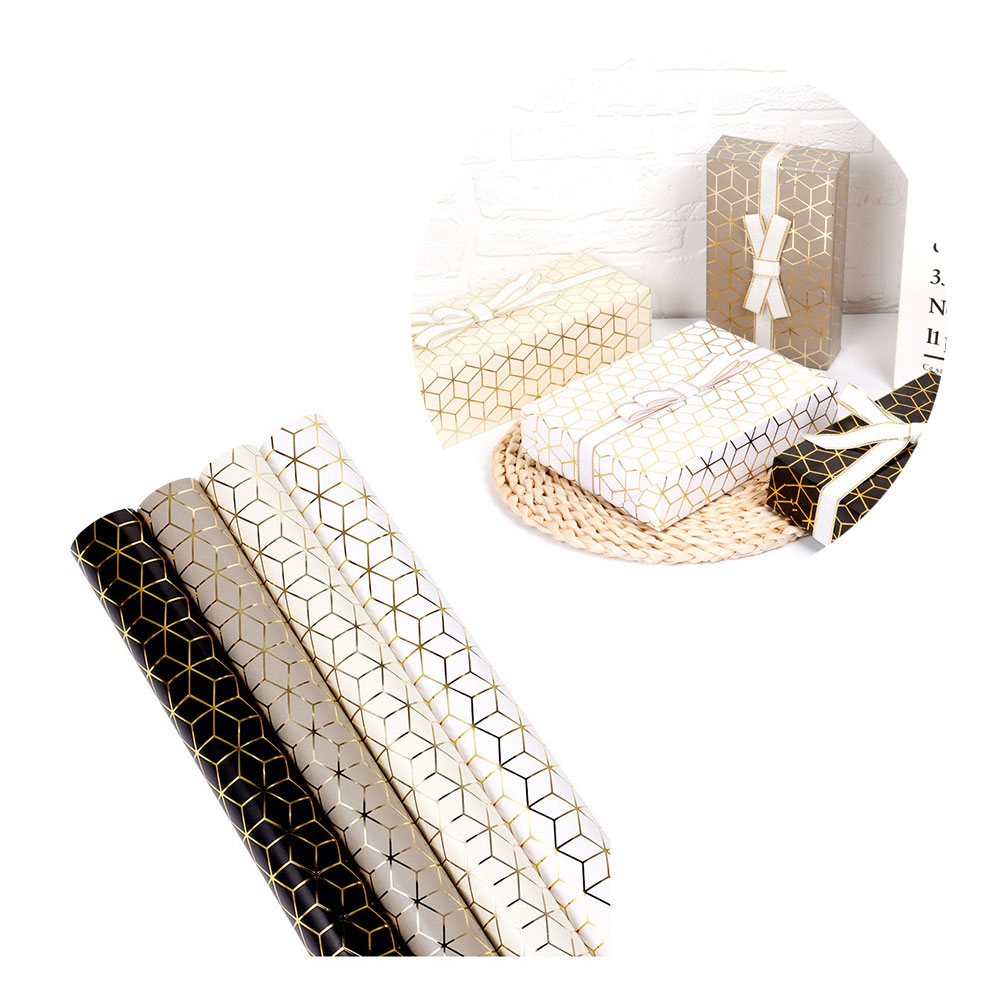 (4er Set) 70x50cm Geschenkpapier Deko Geschenk Verpackung mit Geometrischem Muster - Weiss / Beige / Schwarz