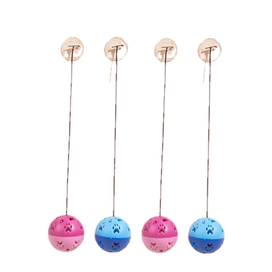(4er Set) Interaktives Katzen Spielzeug Hängender Kunststoff Haustier Ball mit Glocke / Saugnapf - Assortiert