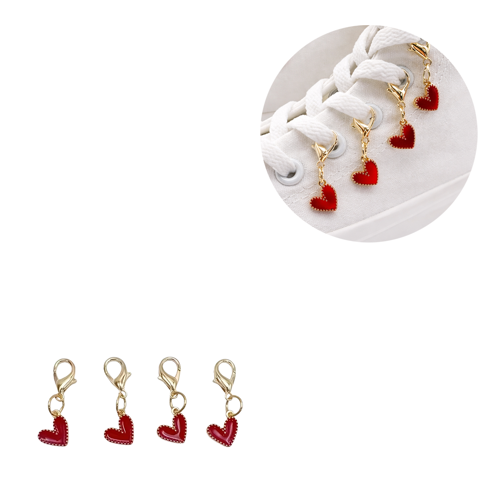 - 4er Set Schuh Charms Anhänger mit roten Herzen
