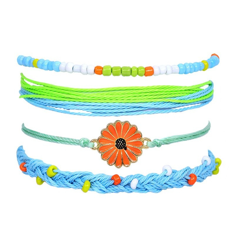 (4er Set) Stoff Armband Perlen Accessoire Freundschaftsband - Grün / Blau