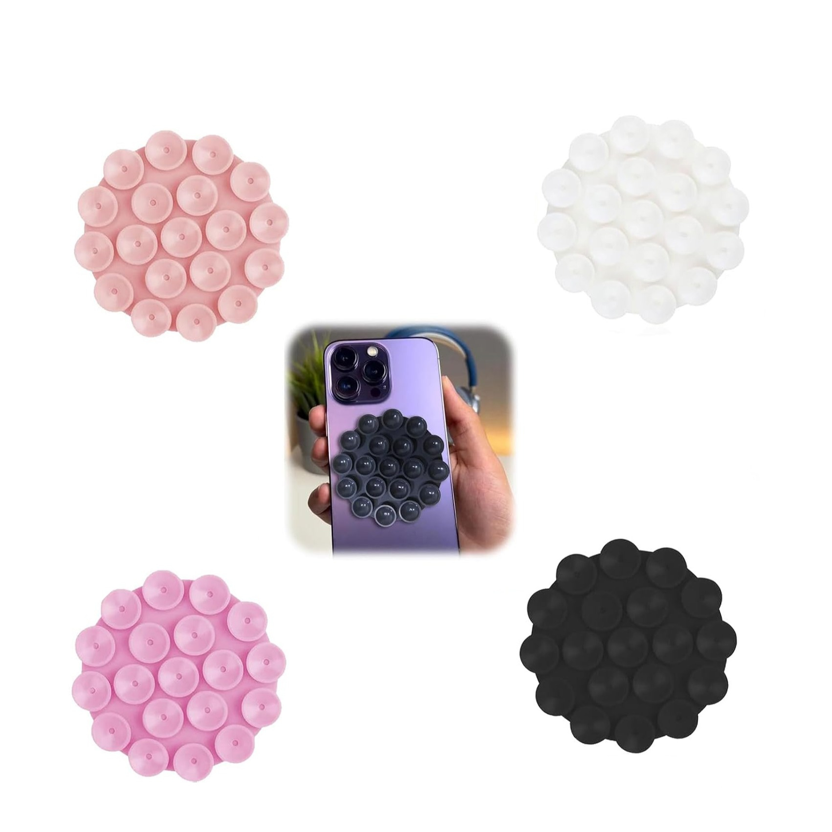 (4er Set) Universal Silikon Saugnapf Smartphone Halterung Selbstklebend - Schwarz / Weiss / Rosa / Pink