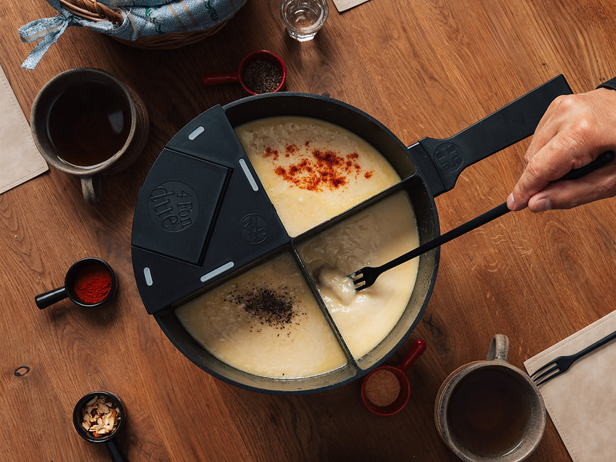 Der Protector von 4Fondue wurde mit einem klaren Ziel entwickelt: einen unbeschwerten Fondueabend für Menschen mit Glutenunverträglichkeit zu ermöglichen. Der clevere Zusatz schützt deine Fondue Kammer vor anderen Brotkrümel – für mehr Sicherheit und Genuss am Tisch. Damit ist die Schutz Abdeckung ideal für alle, die auf eine glutenfreie Ernährung angewiesen sind – und trotzdem das gemeinsame Erlebnis beim Käsefondue nicht missen möchten. Es gibt also keinen Grund mehr, dass die 1% an Zöliakie Leidenden und die 6% von Gluten Unverträglichkeit Betroffenen nicht wieder Fondue Essen können. Und genau dafür ist der Protector für die 4Fondue Caquelons da!