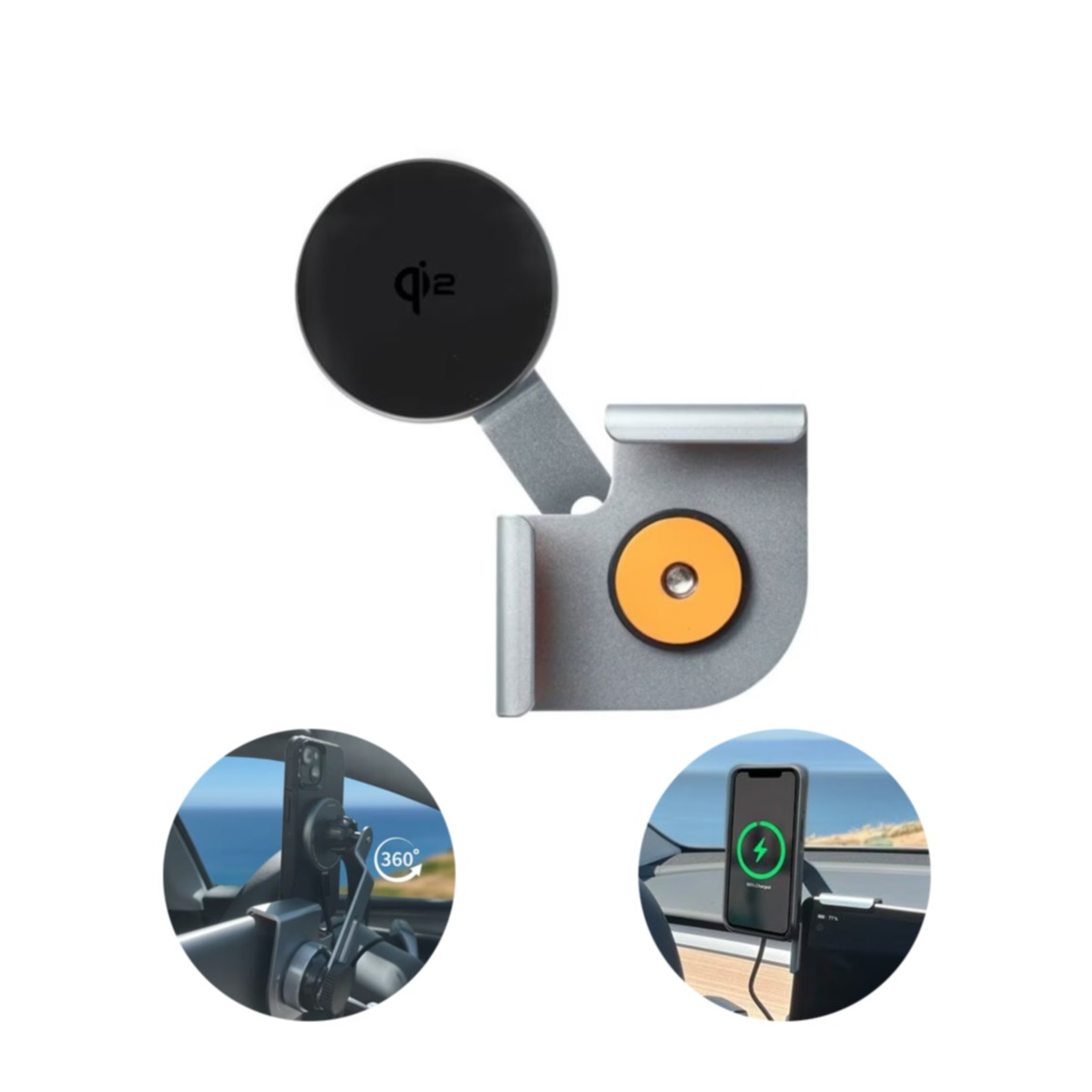 (15W) Screen Mount MagSafe Auto KFZ Ladegerät Qi2 Wireless Charger 360° Car Display Smartphone Halterung (4S541114) - Grau