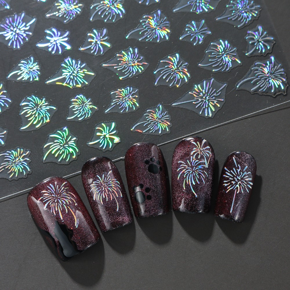 (50-tlg. Set) Nagel Sticker Nail Art Tattoo Selbstklebende Aufkleber Feuerwerk Irisierend - Silber