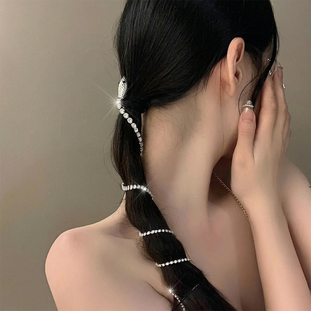 (50cm) Schlangen Haarspange Clip Kette Haar Accessoire mit Strass - Silber