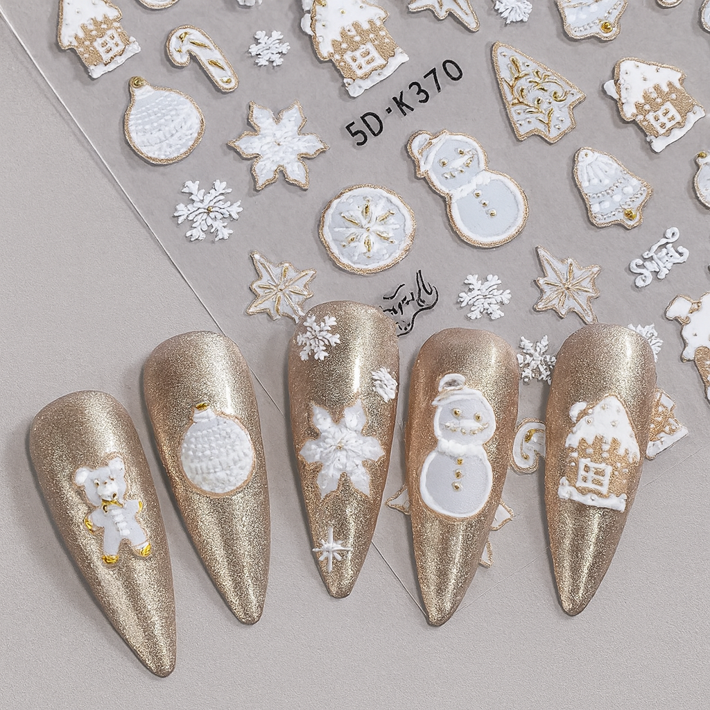 (54-tlg. Set) 5D Nagel Sticker Nail Art Tattoo Selbstklebende Aufkleber Weihnachten - Gold / Weiss