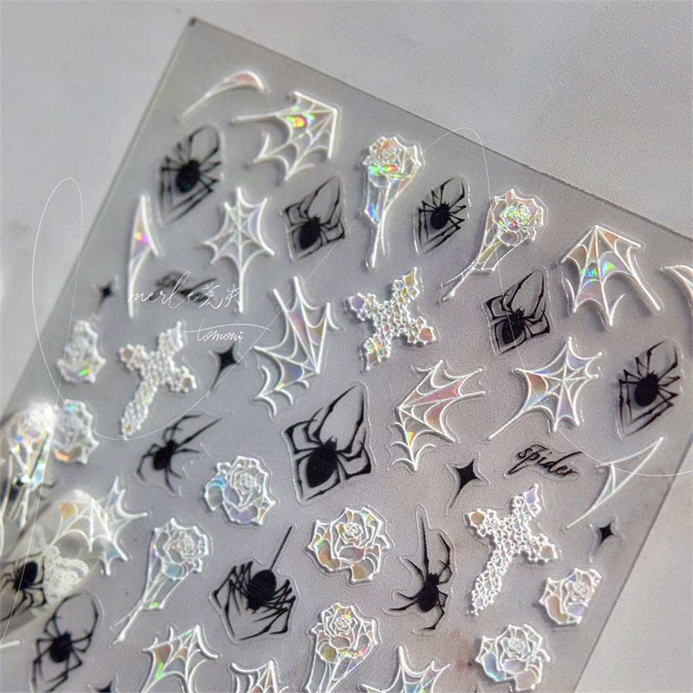- Nagel Sticker in Weiss / Schwarz mit Spinnen und Rosen