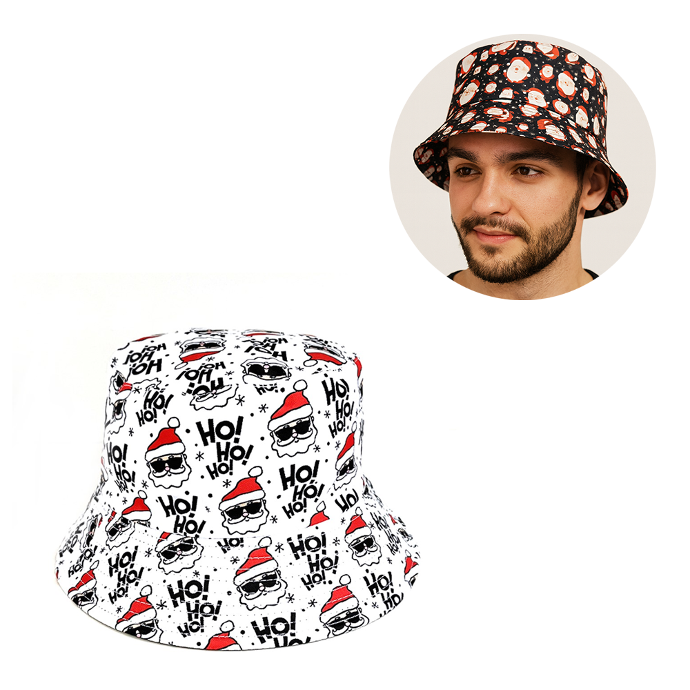 Der Fischerhut überzeugt als cooles Fashion Accessoire und bringt mit seinem fröhlichen Ho! Ho! Ho! Schriftzug sofort Weihnachtsstimmung in deinen Look. Die praktische Wendefunktion sorgt für Abwechslung. Wähle zwischen auffälligem Weihnachts Motiv oder schlichter, einfarbiger Seite. Bequem, pflegeleicht und vielseitig tragbar und somit der ideale Begleiter für die kalte Jahreszeit und als ein originelles Geschenk für jeden Weihnachtsfan.