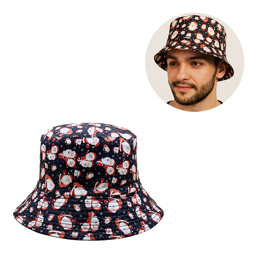 Der Fischerhut überzeugt als cooles Fashion Accessoire und bringt mit seinem fröhlichen Weihnachtsmann Design sofort Weihnachtsstimmung in deinen Look. Die praktische Wendefunktion sorgt für Abwechslung. Wähle zwischen auffälligem Weihnachts Motiv oder schlichter, einfarbiger Seite. Bequem, pflegeleicht und vielseitig tragbar und somit der ideale Begleiter für die kalte Jahreszeit und als ein originelles Geschenk für jeden Weihnachtsfan.