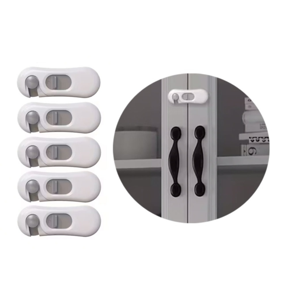 (5er Set) 100x35mm Universal Baby Kindersicherung Selbstklebende Schutzvorrichtung für Türe / Schubladen / Schrank - Weiss / Grau
