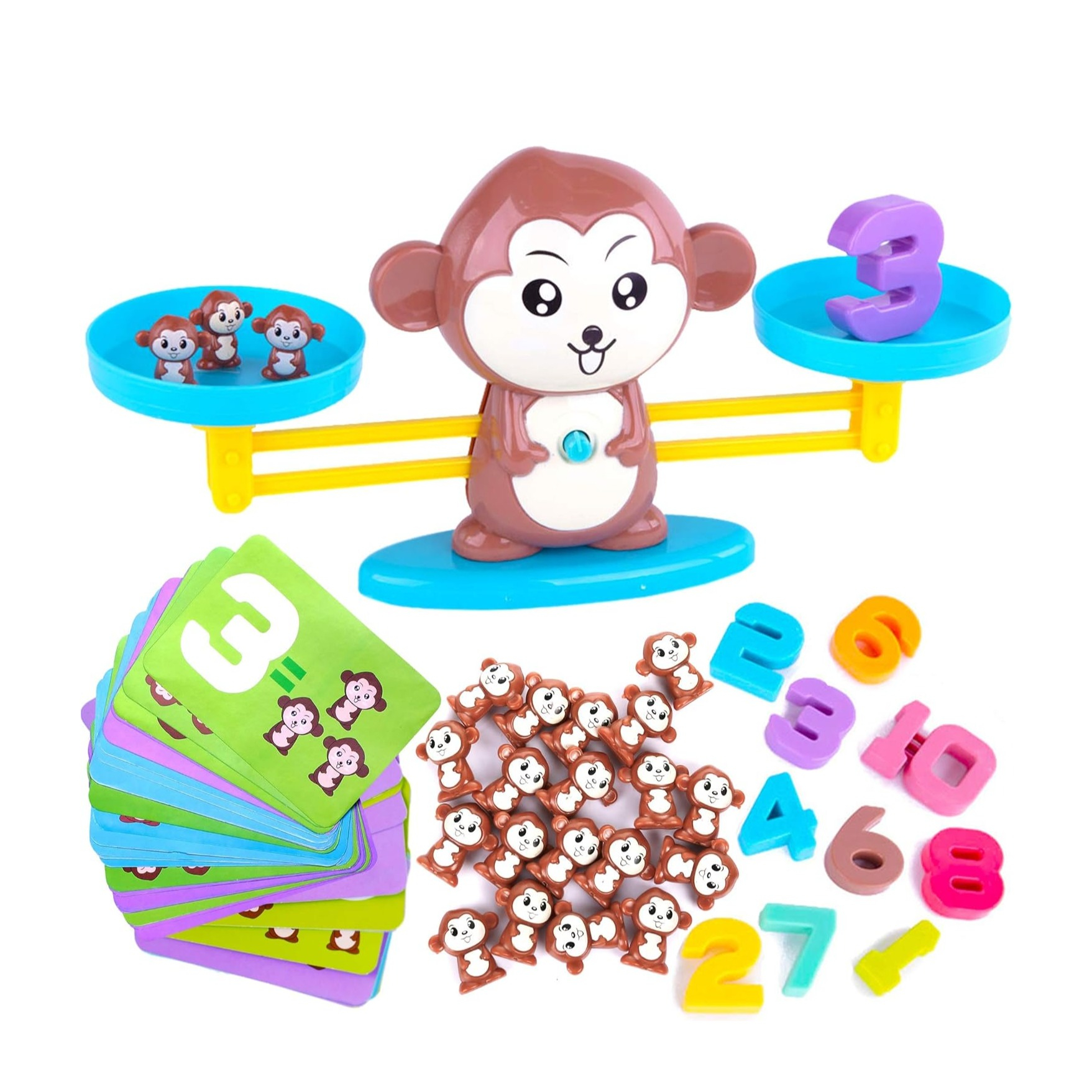 (60-tlg. Set) Kinder Mathematik Spiel Waage Balance Affen Rechenaufgaben Lern Spielzeug für Addition inkl. Aktionskarten