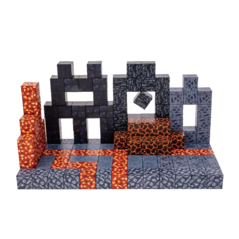 (64-tlg. Set) Magnet Würfel Bausteine DIY Kinder Spielzeug Magnetische Miniatur Welt Lernspiel - Lava Höhle