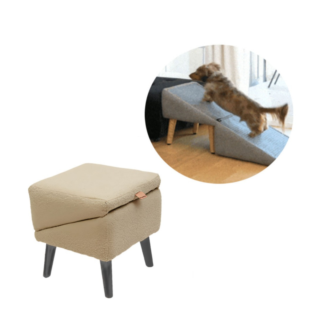 (69x35cm) 2in1 Haustier Rampe Faltbarer Hocker Hunde Leiter Anti-Rutsch Katzen Aufstiegshilfe für Sofa / Bett - Beige