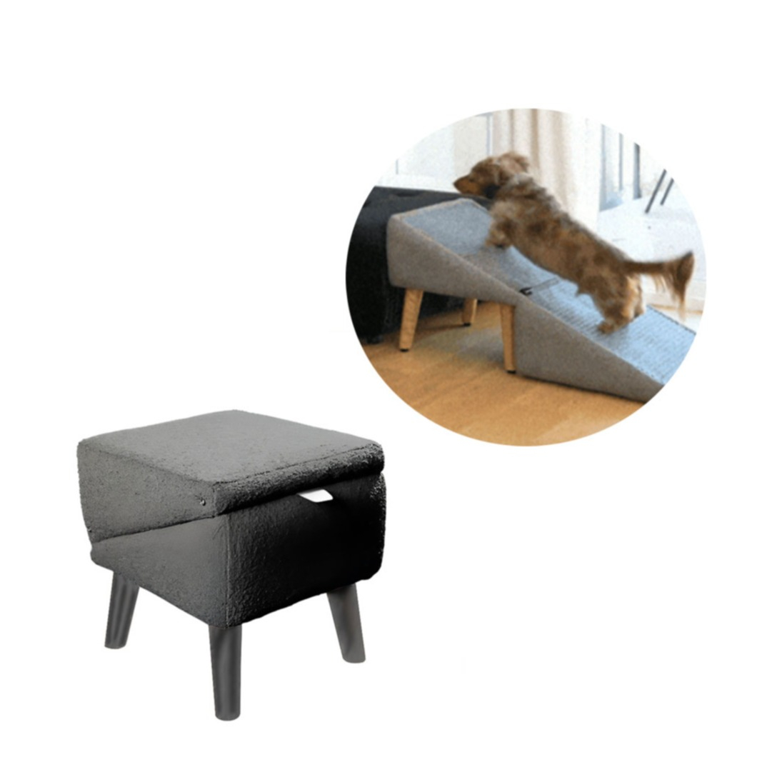 (69x35cm) 2in1 Haustier Rampe Faltbarer Hocker Hunde Leiter Anti-Rutsch Katzen Aufstiegshilfe für Sofa / Bett - Schwarz