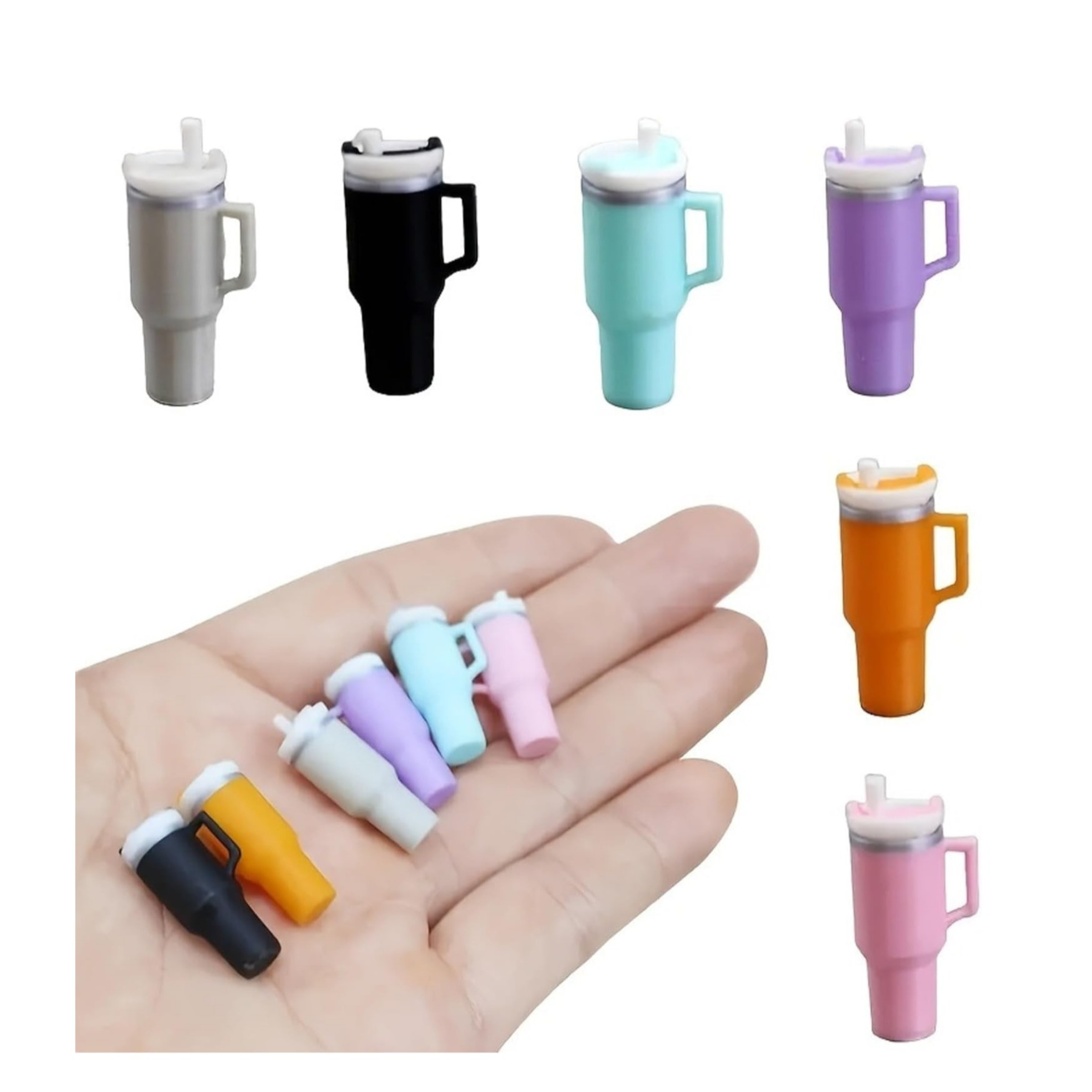 (6er Set) Ø1x2cm Miniatur Thermo Becher Mini Architektur Deko Bastel Zubehör für Kreative DIY Projekte - Bunt