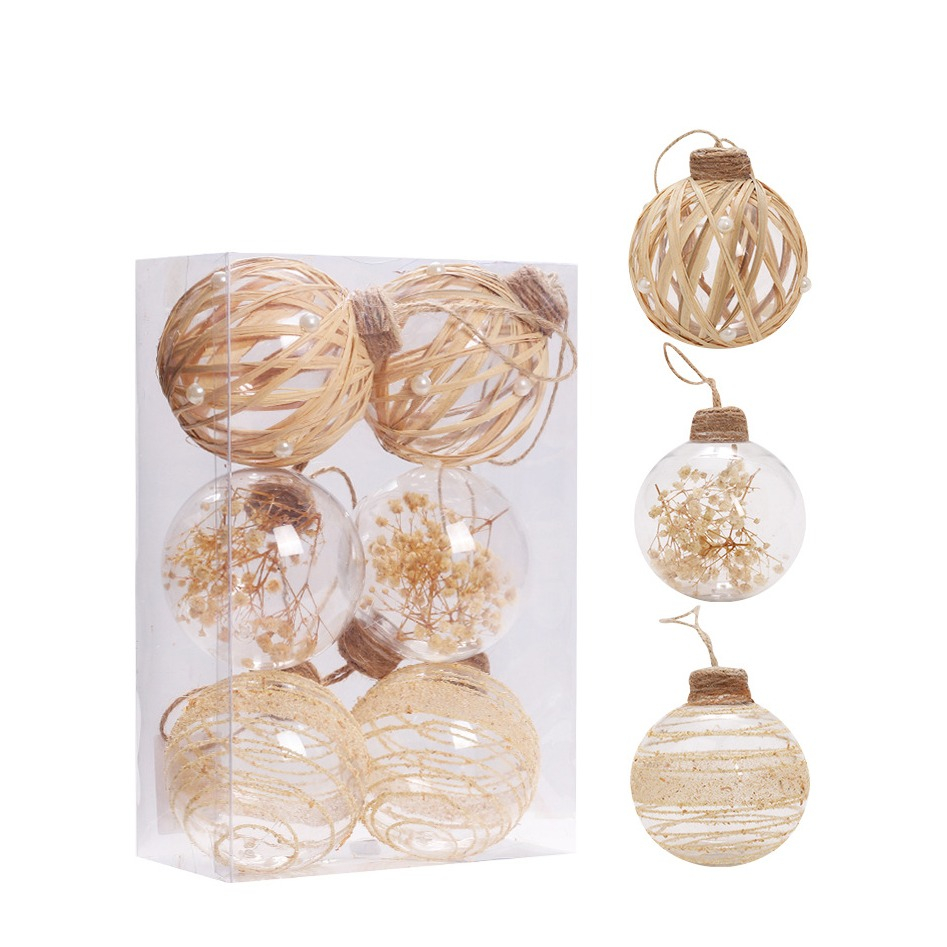 (6er Set) Ø8cm Christbaum Schmuck Gefüllte Boho Weihnachtskugeln Transparente Schnur Tannenbaum Anhänger Home Deko - Blumen