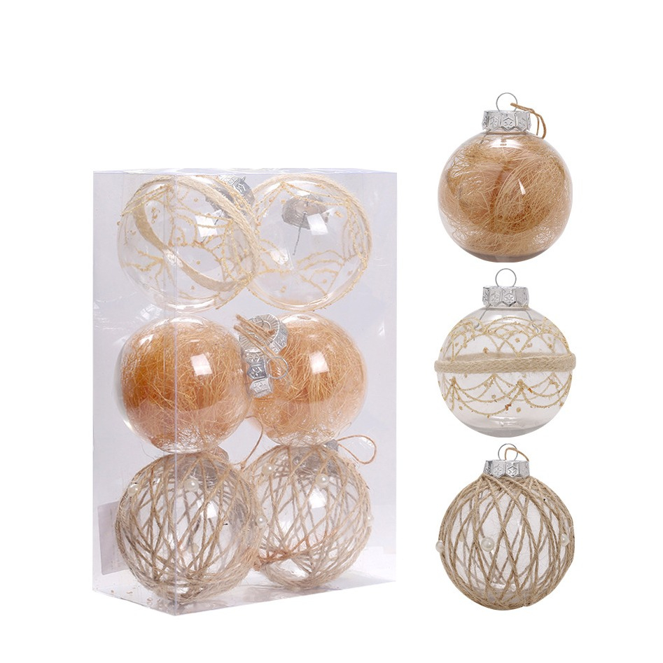 (6er Set) Ø8cm Christbaum Schmuck Gefüllte Boho Weihnachtskugeln Transparente Schnur Tannenbaum Anhänger Home Deko - Stroh