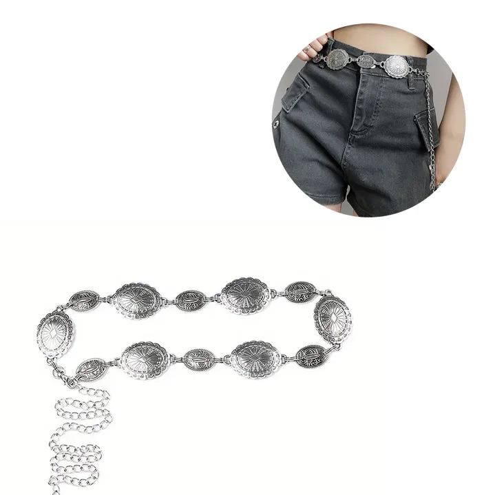 (70-117cm) Metall Concho Taillengürtel Festival Accessoire Gürtel mit Kette - Silber