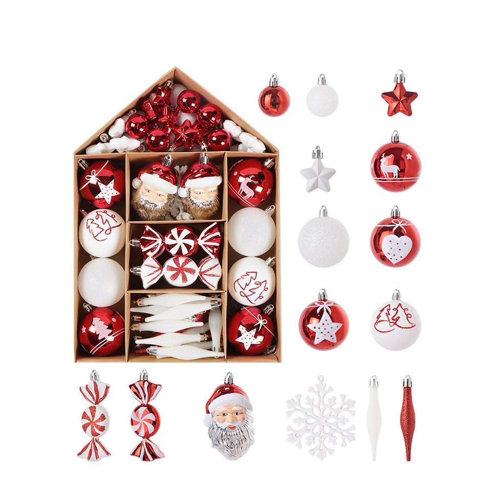 (70er Set) Christbaum Schmuck Glitzer Weihnachtskugeln Tannenbaum Ornamente Home Deko - Rot / Weiss