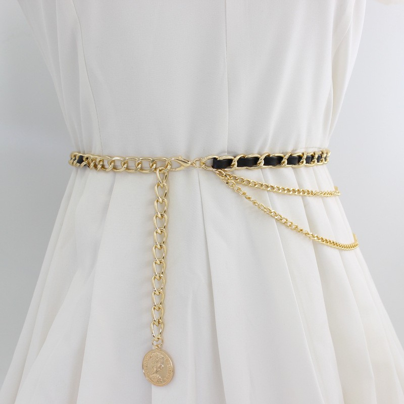 Mit dieser einzigartigen Taillen Kette ziehst Du diesen Sommer jeden Blick auf Dich: Das Metall Band, welches im Handumdrehen an der Taille festgemacht werden kann, ist mit einem eleganten Leder Band versehen und macht sich besonders gut mit einem Crop Top, kombiniert mit einem Bikini oder über einem Kleid oder Blazer. Das Accessoire wird mit einem Karabinerverschluss geschlossen und ist in der Länge verstellbar.