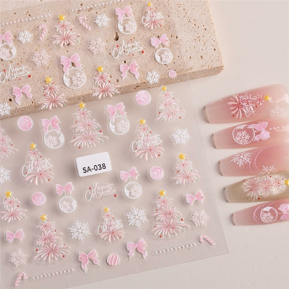 (83-tlg. Set) Nagel Sticker Nail Art Tattoo Selbstklebende Aufkleber Weihnachten - Rosa