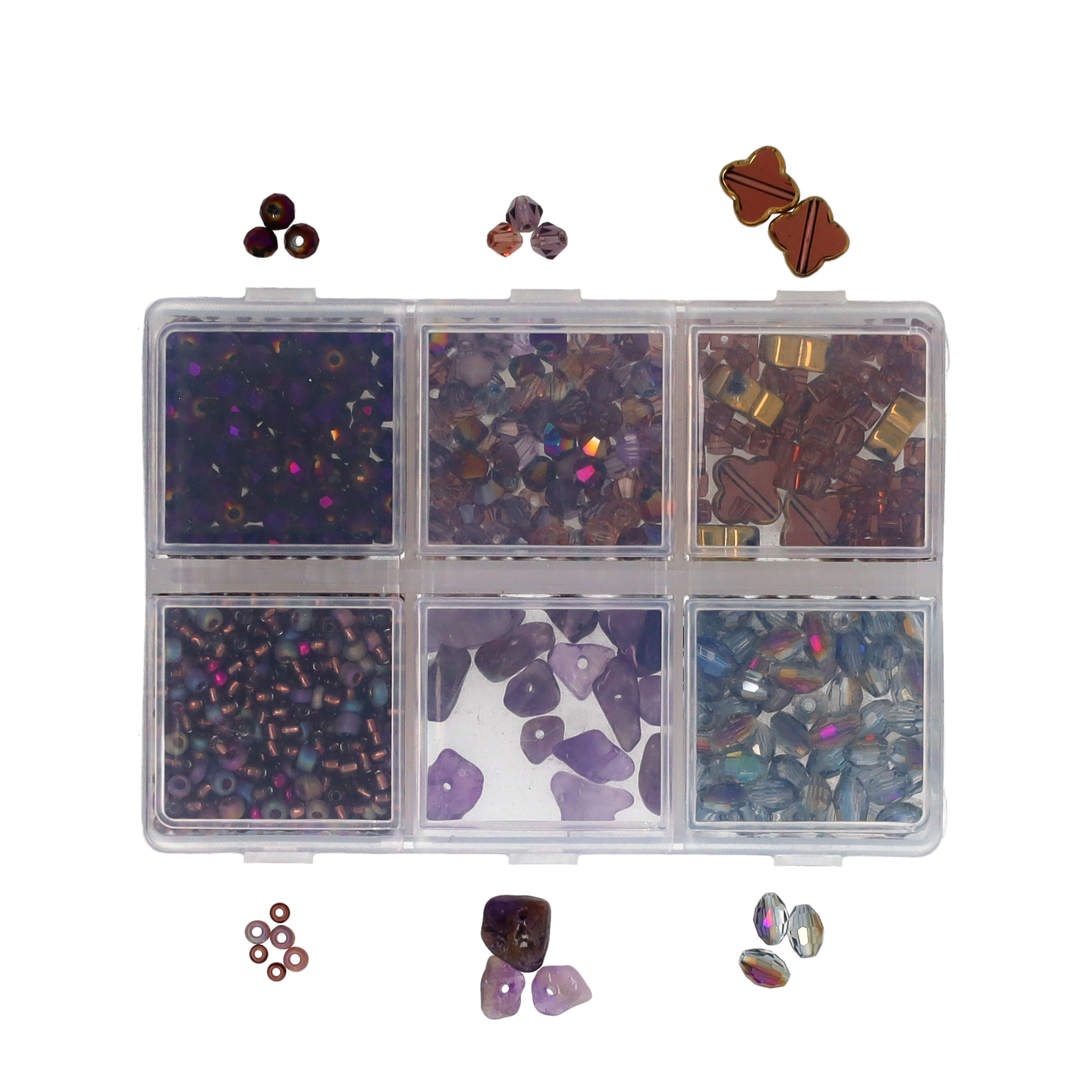 (850er Set) 1-11mm Schimmernde Glas Perlen DIY Bastel Schmuck Zwischenperle für Armband / Kette - Lila