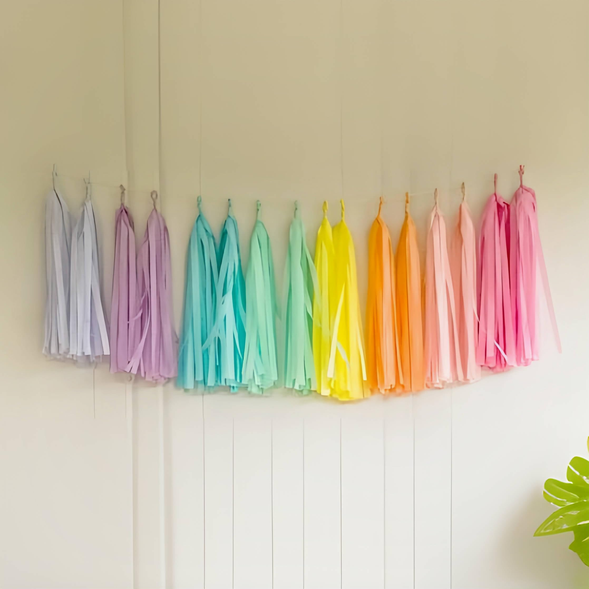 (88-tlg. Set) Seidenpapier Party Deko Accessoire Pastell Pompons DIY Quasten Girlande inkl. Schnur - Bunt