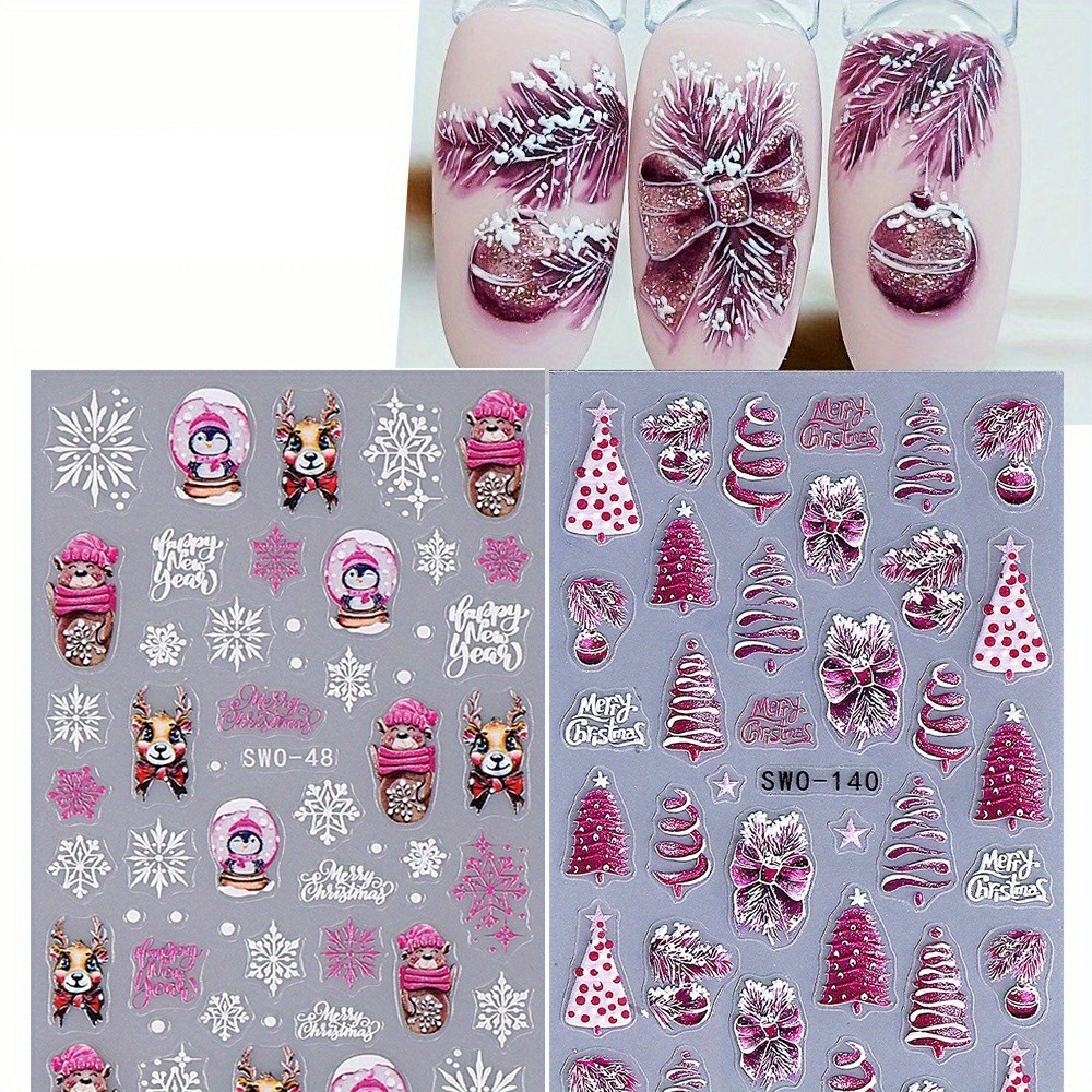 (89-tlg. Set) Nagel Sticker Nail Art Tattoo Selbstklebende Aufkleber Weihnachten - Rosa / Weiss